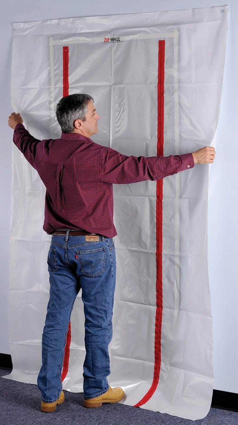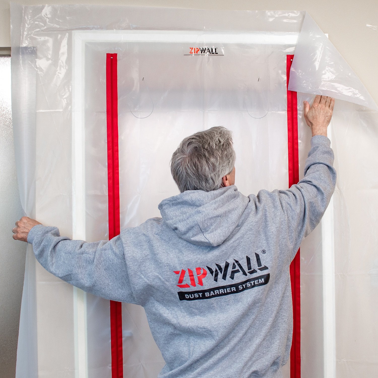 Die einfache Installation erfolgt mit dem beiliegenden doppelseitigen ZipWall®-Klebeband, das den Türrahmen schont und keine Rückstände hinterlässt. Zusätzlich sorgen Klapphaken dafür, dass die Tür bei Bedarf offen gehalten werden kann – ideal, wenn häufige Zugänge erforderlich sind.