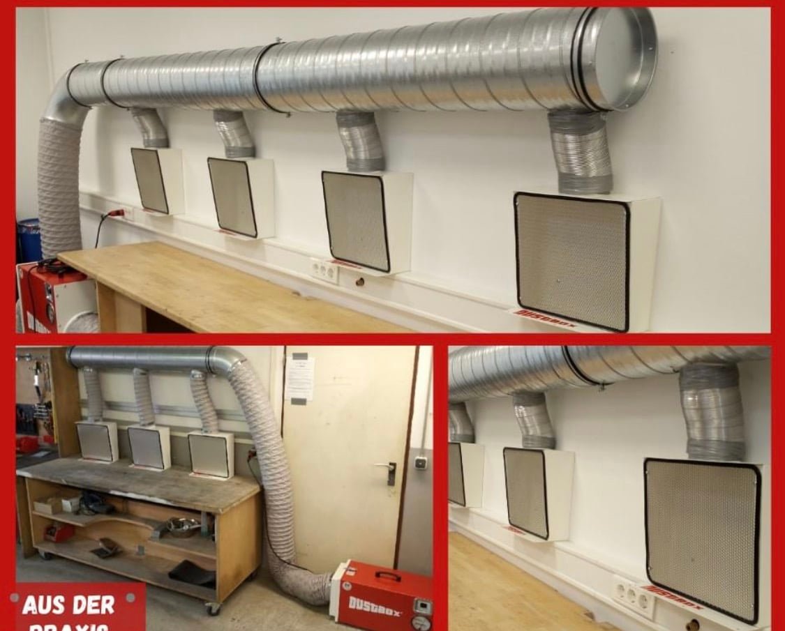 Der DustBox® DB 1000 ist besonders geeignet für den Einsatz in kleinen bis mittelgroßen Räumen bis 12 m², gemäß den Vorgaben der BG BAU. Der Luftreiniger sorgt mit einem 15-fachen Luftwechsel bei einer Raumhöhe von 3 m für eine kontinuierlich saubere Luft, selbst bei gebrauchten Filtern. Die stufenlose Drehzahlregelung ermöglicht eine flexible Anpassung des Luftstroms an unterschiedliche Anforderungen, etwa zur Unterdruckhaltung oder für die Maschinenabsaugung durch externe Geräte.