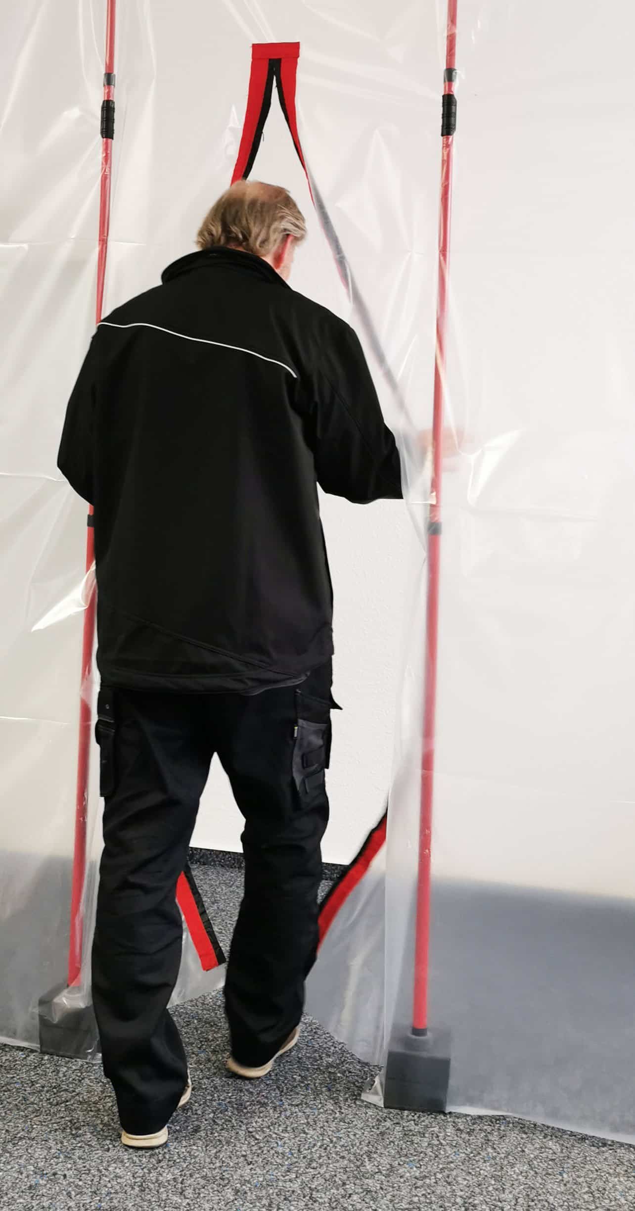 Die Tür eignet sich besonders für den Einsatz auf Baustellen, in Lagerräumen oder bei der Trennung von verschiedenen Arbeitsbereichen. Sie kann problemlos in Folienwände integriert werden und sorgt für eine staub- und abluftdichte Trennung, wodurch die Arbeitsumgebung sauber und sicher bleibt. Zudem ist die Tür wiederverwendbar, was sie zu einer kostengünstigen und nachhaltigen Lösung für längere Projekte macht.