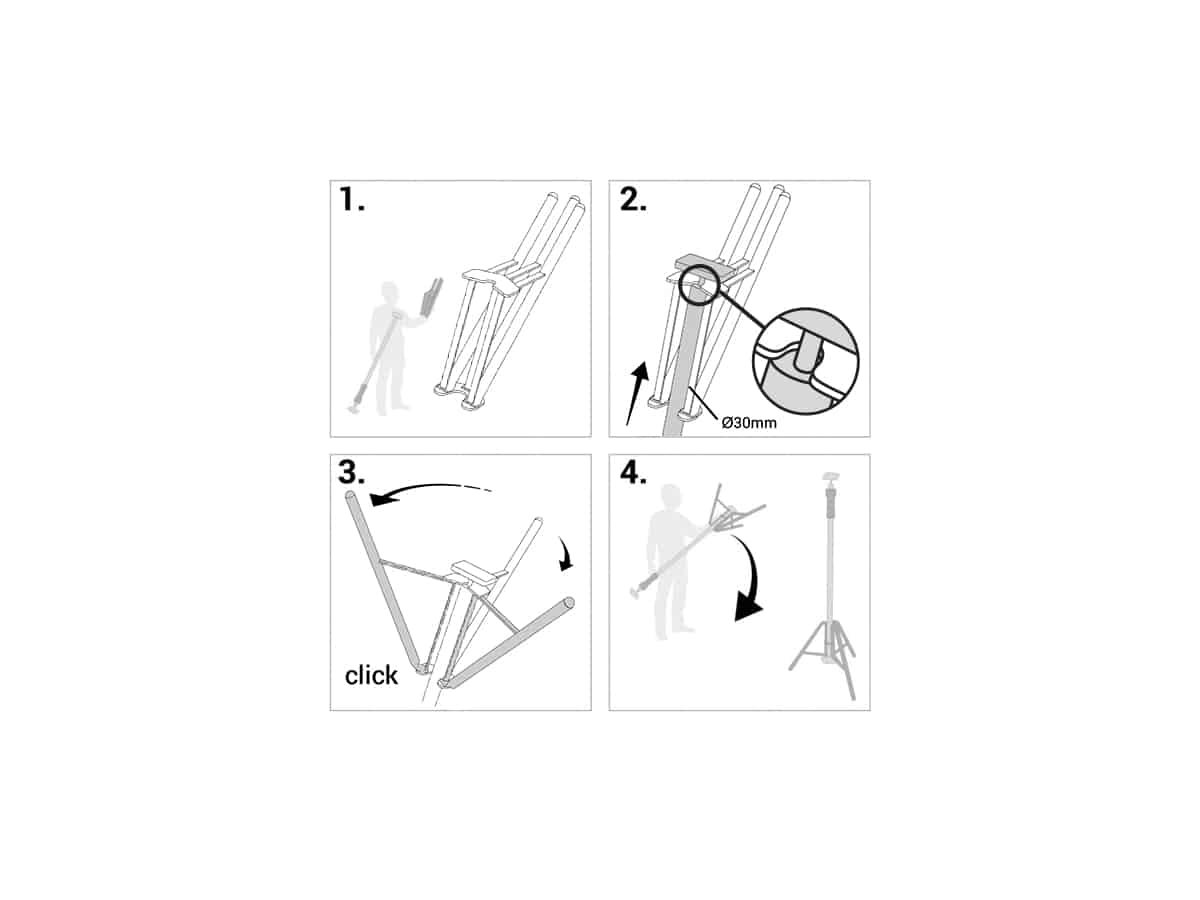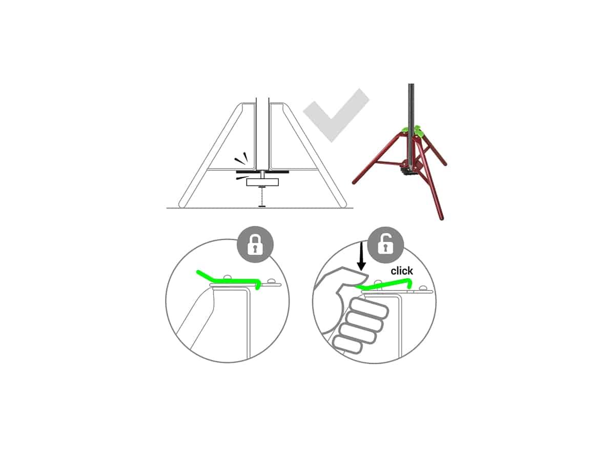 Das zusammenklappbare Design und das praktische Klicksystem ermöglichen eine schnelle Montage und Demontage. Das Stativ ist sofort einsatzbereit und spart wertvolle Zeit auf der Baustelle.