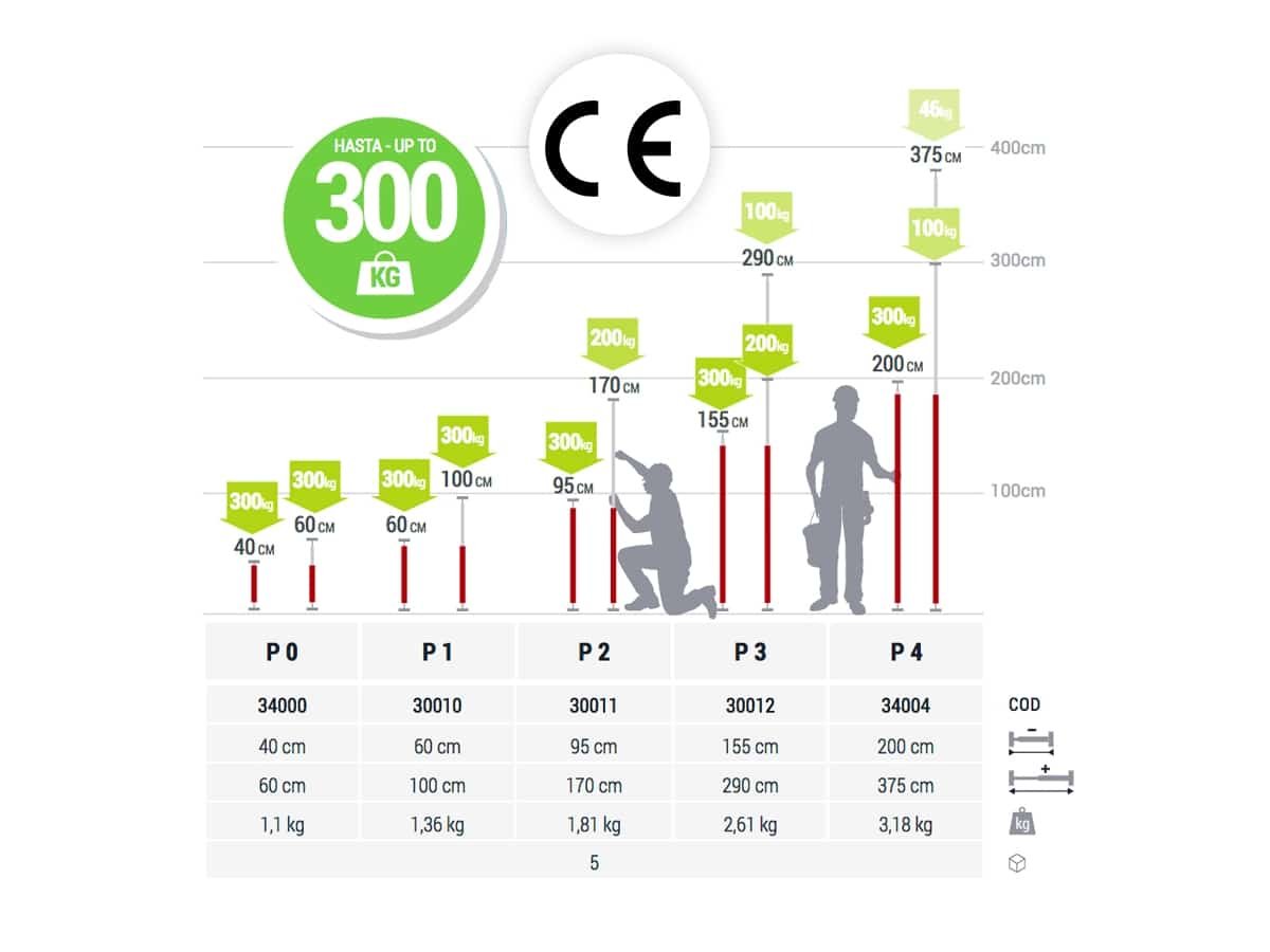 Verstellbereich: 60-100 cm / 95-170 cm / 155-290 cm / 200-375 cm