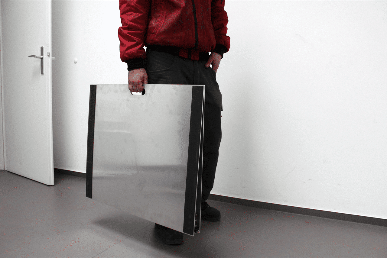 Die Staubklebematte CARRYME überzeugt durch ihre innovative Kombination aus effektiver Staubbindung und praktischer Handhabung. Erstens sorgt die klebende, mit Acrylkleber beschichtete PE-Folie dafür, dass feiner Staub und Schmutz – etwa von Schuhsohlen oder Transporträdern – zuverlässig haften bleiben. Zweitens ermöglicht die robuste Transportklappe aus Aluminium, dass ungenutzte Schichten der Staubklebematte sicher zur nächsten Baustelle mitgenommen werden, ohne dass die oberste Lage an den darunterliegenden Schichten haften bleibt. Drittens bietet die transparente Ausführung der Staubklebematte die Möglichkeit, ein unterlegtes Firmenlogo sichtbar werden zu lassen – eine dezente Chance zur Firmenwerbung. Das Set umfasst neben der Aluminiumklappe (mit praktischen Griffaussparungen und schützenden Moosgummistreifen, die Beschädigungen und Verrutschen verhindern) insgesamt 30 nummerierte, transparente Folien. Die klare Kennzeichnung der Folien unterstützt die Übersicht über den Lagerbestand und den Verbrauch. Mit den Maßen von 1,26 m x 0,75 m im ausgeklappten Zustand und 0,58 m x 0,75 m im zusammengeklappten Zustand erfüllt die Transportklappe höchste Ansprüche an Robustheit und Funktionalität – ideal für den professionellen Einsatz in anspruchsvollen Arbeitsumgebungen.