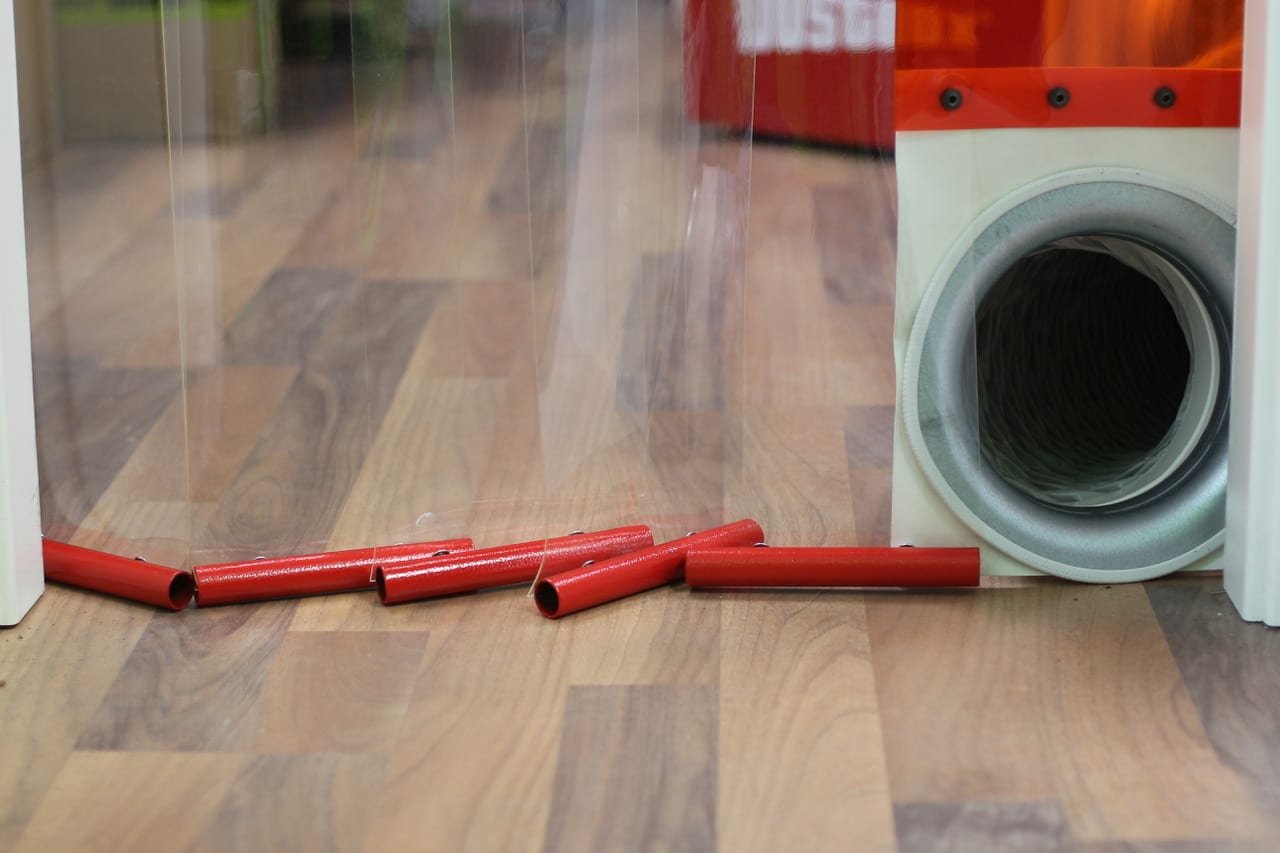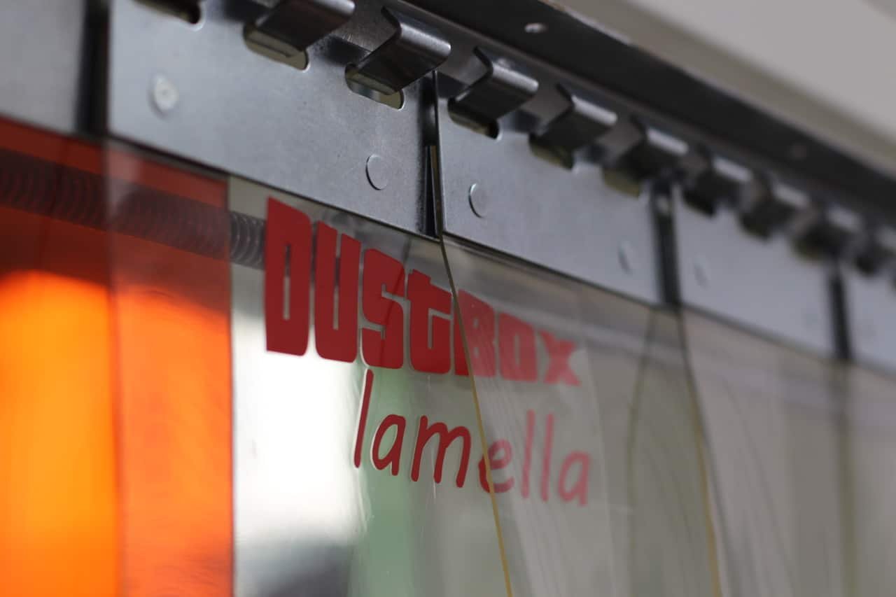 Dank der präzisen Schlauchdurchführung für einen DN-200-Schlauch ist die Staubschutztür perfekt für den Einsatz mit Luftreinigern geeignet. Bei der Absaugung aus dem Arbeitsraum strömt Luft durch die flexiblen Lamellen nach, wodurch das Austreten von Staub zuverlässig verhindert und eine stetige Zuluft in den Arbeitsbereich gewährleistet wird.
