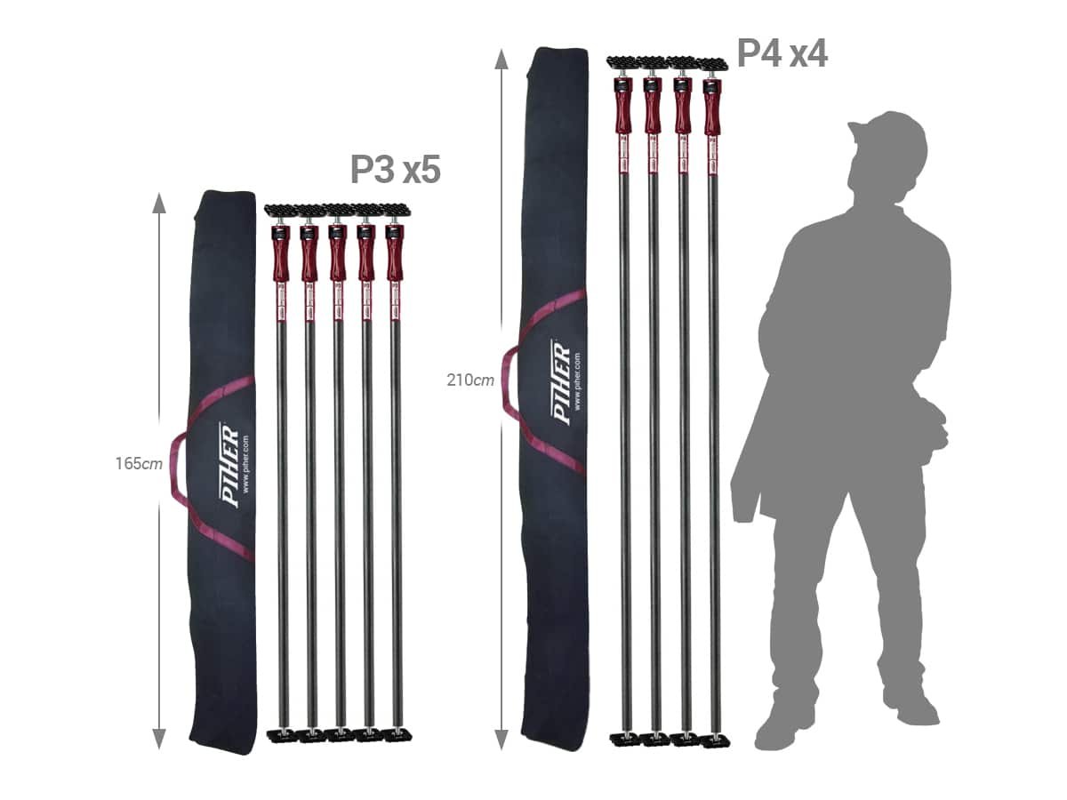 Die SicherTransPro Tragetasche von Piher ist speziell für den sicheren Transport und die platzsparende Aufbewahrung von Teleskopstangen und Montagestützen konzipiert. Mit einer Länge von 165 cm und einer Traglast von maximal 13 kg bietet sie Platz für bis zu 5 Stangen, die zuverlässig geschützt und leicht transportiert werden können.